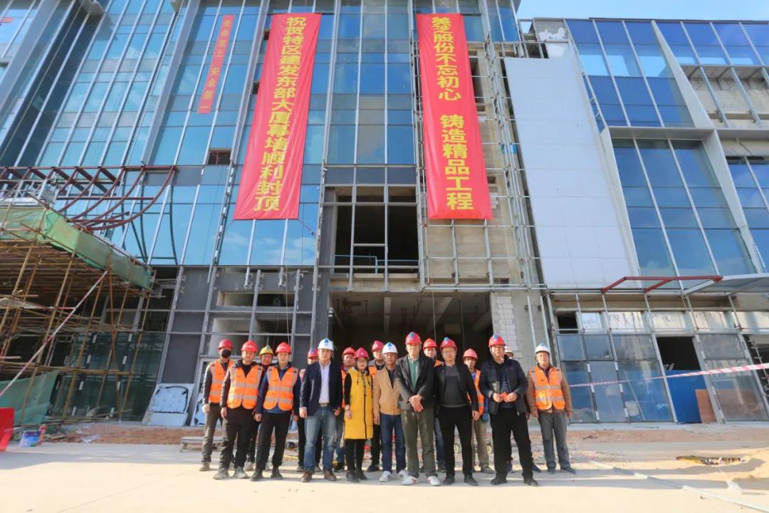 2021年1月16日,美芝股份承接的特區建發(fā)·東部大廈幕墻正式封頂,項目現場舉行了簡單而熱烈的封頂儀式。此次幕墻的順利封頂,標志著深圳市深汕特別合作區(以下簡:深汕特別合作區)第一座集總部辦公和商業商務配套為一體的超高層綜合體建筑外立面形象工程完美收官,刷新了深汕特別合作區幕墻天際線,為合作區建設增光添彩。
